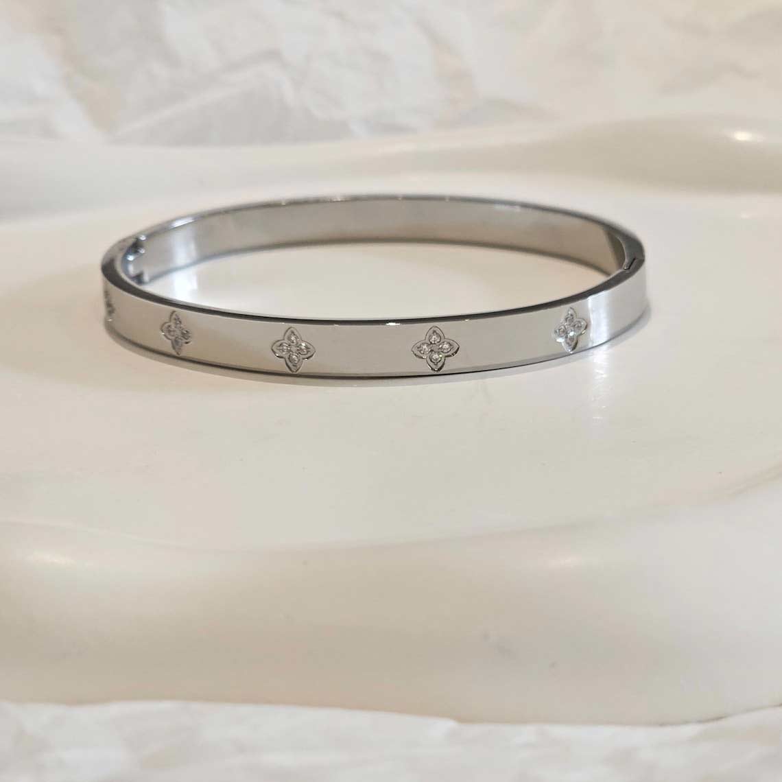 Silver Diamond Clover Bangle, Minimalist Bangle Bracelet 1363