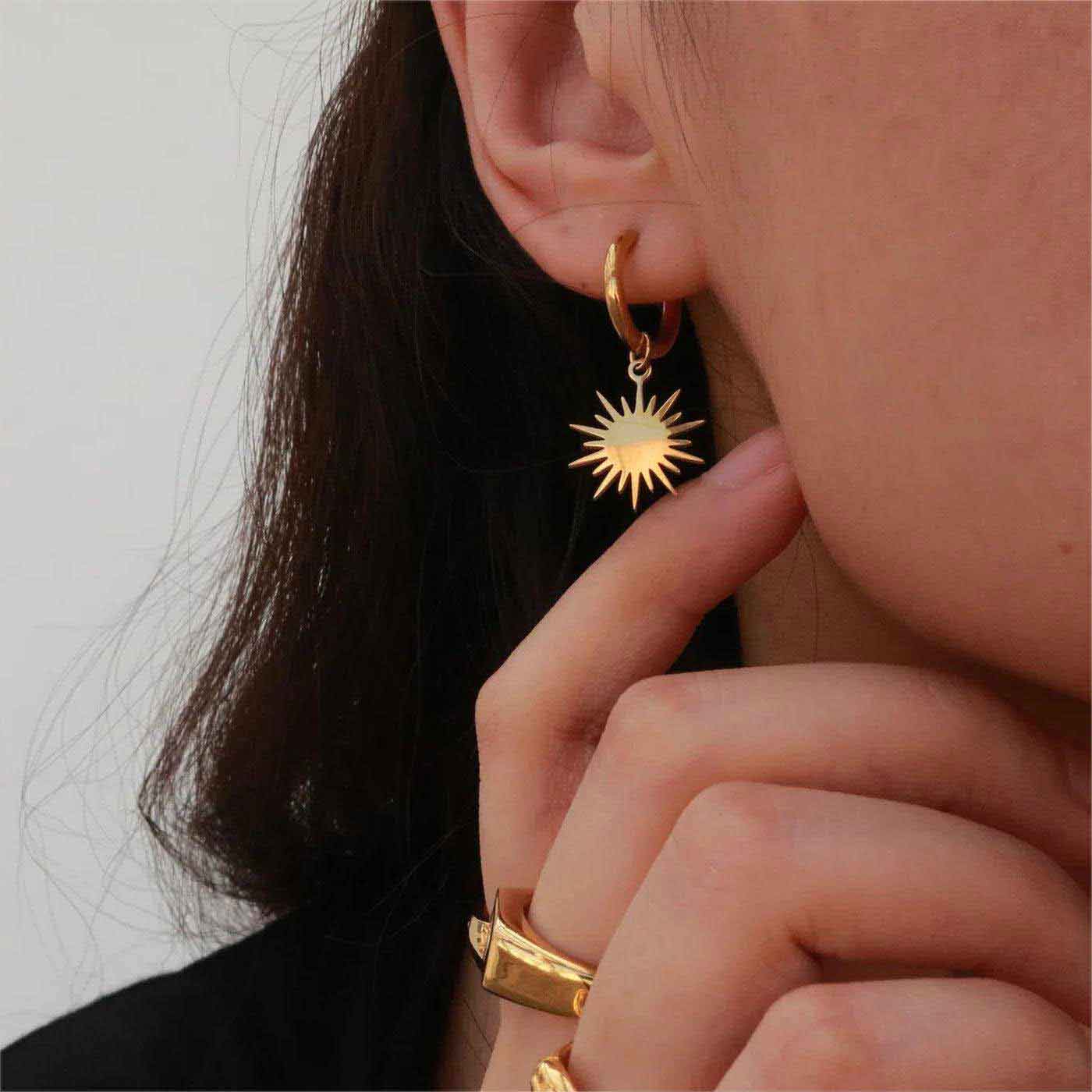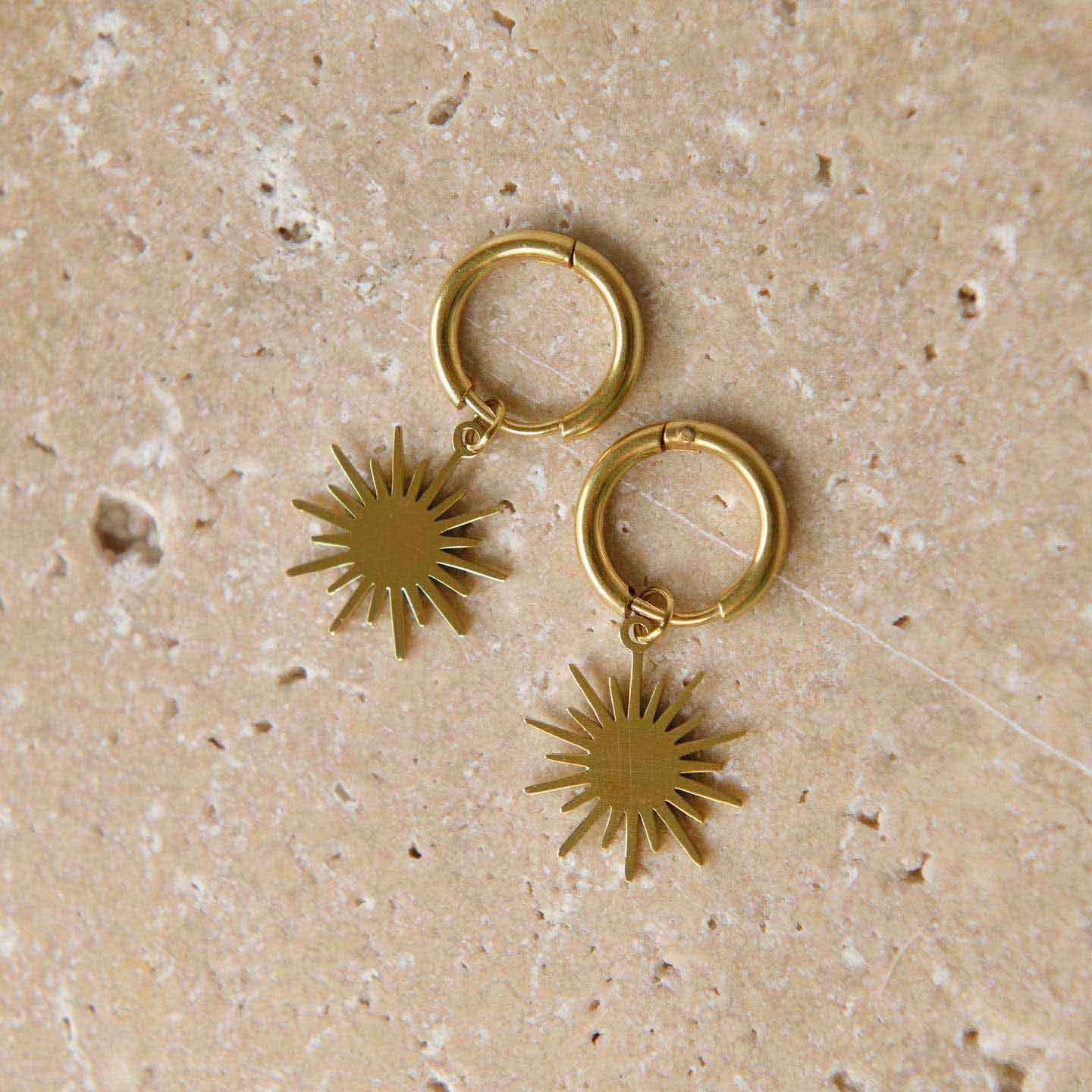 The small hoops feature a pair of blazing hot sun drop charms, making them the perfect accessory for sunny days.