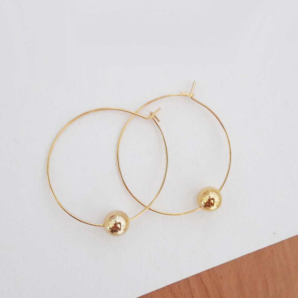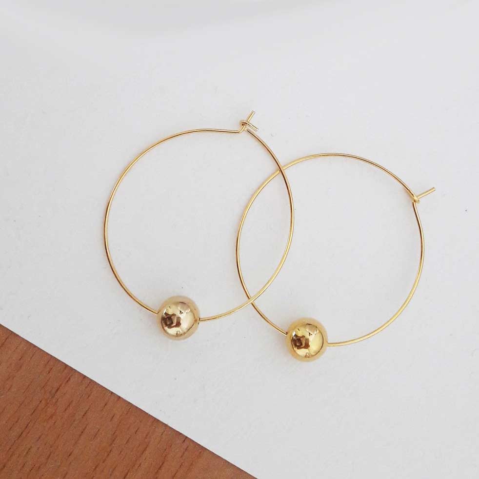 Gorgeous Gold Hoop Earrings with Balls. Delicateand Elegantly, Simple, Everyday earring..