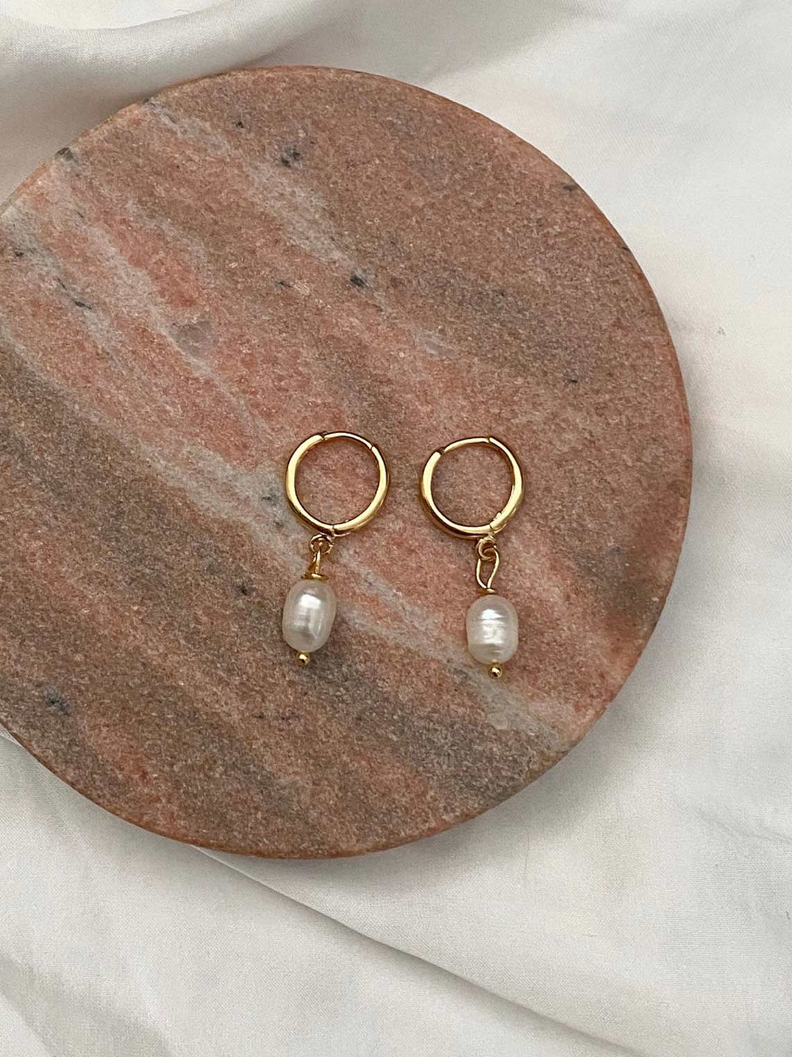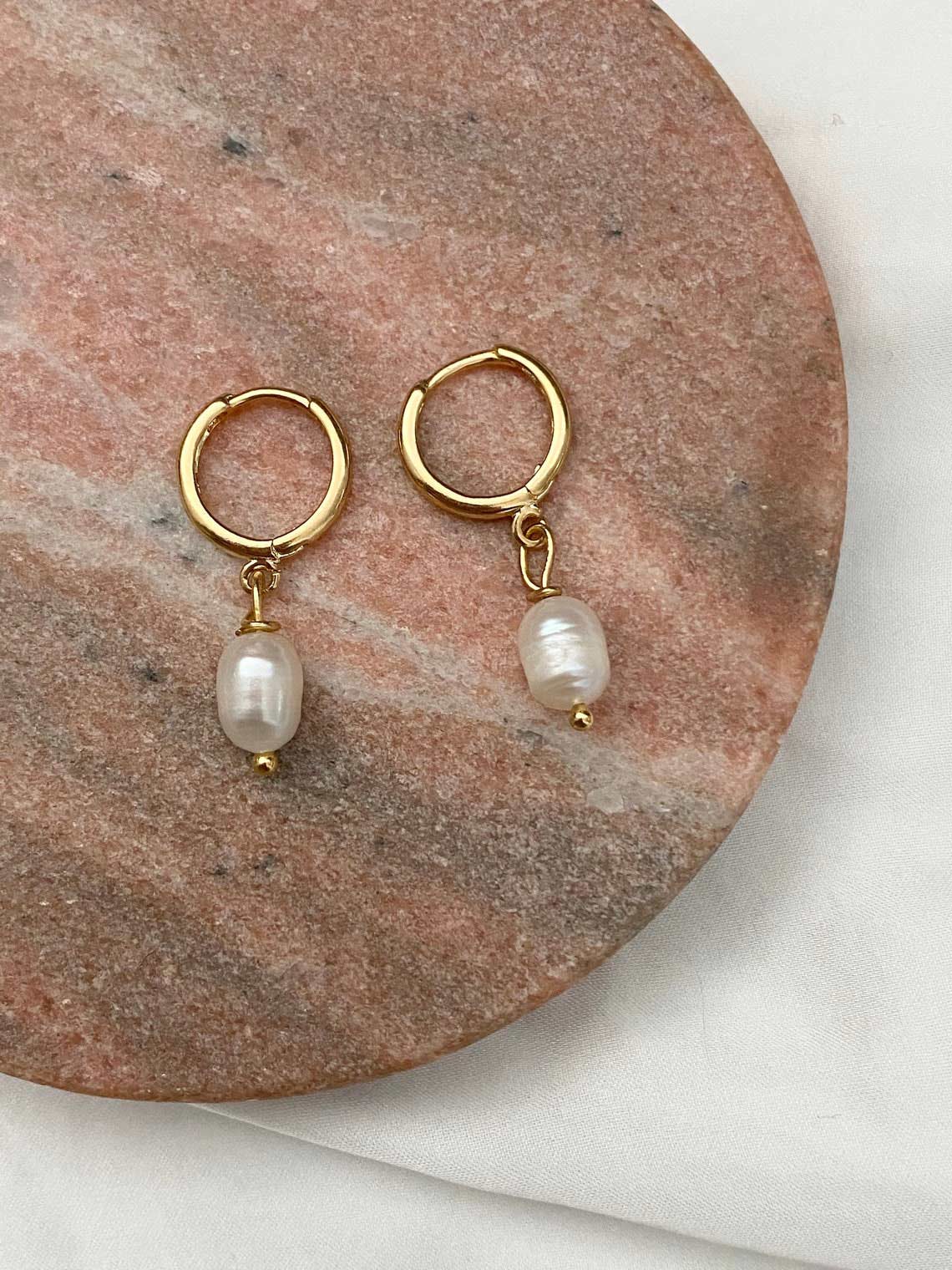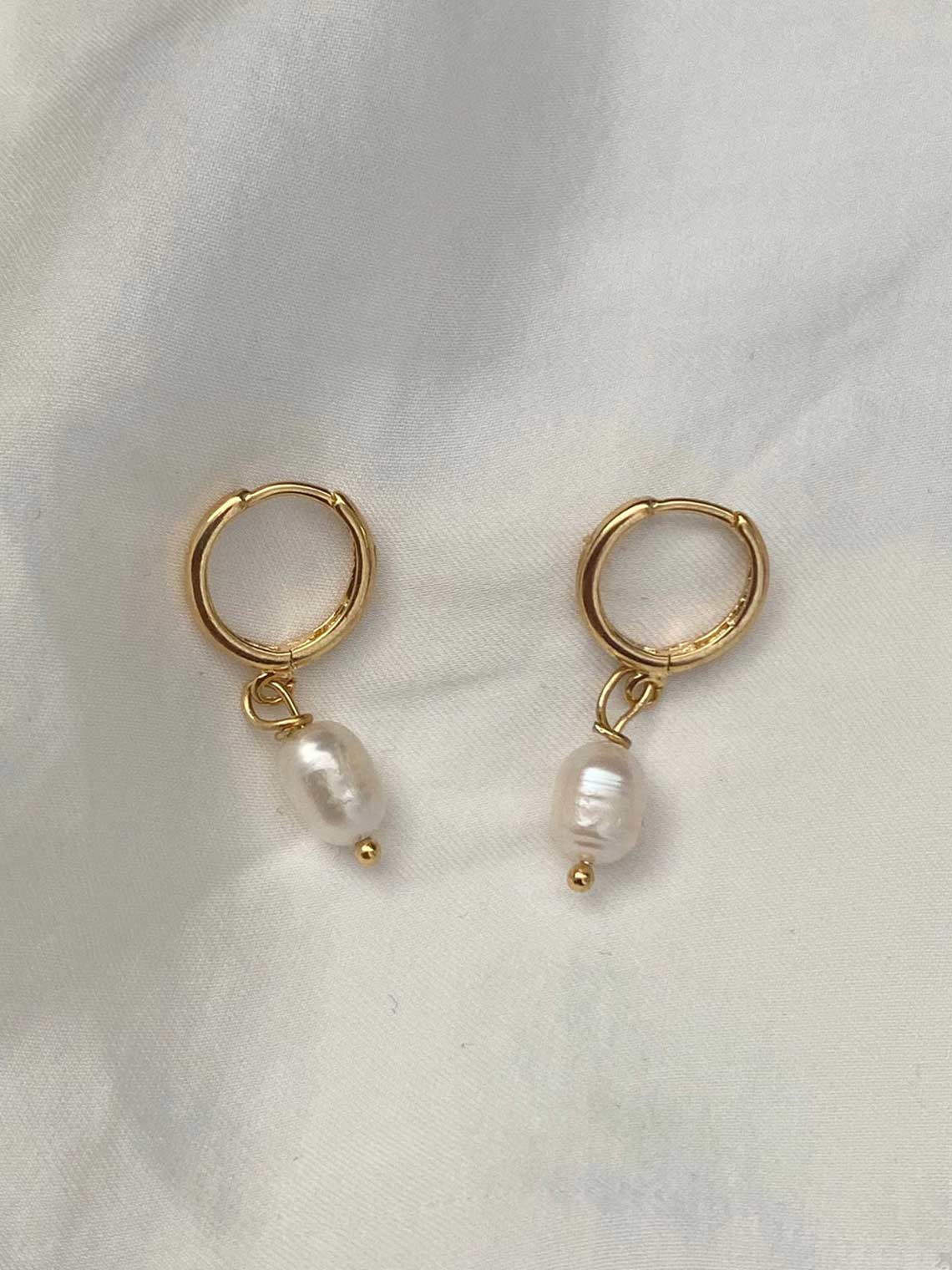 Gold plated brass Huggies with authentic freshwater pearl, each pearl is unique in shape and individual markings