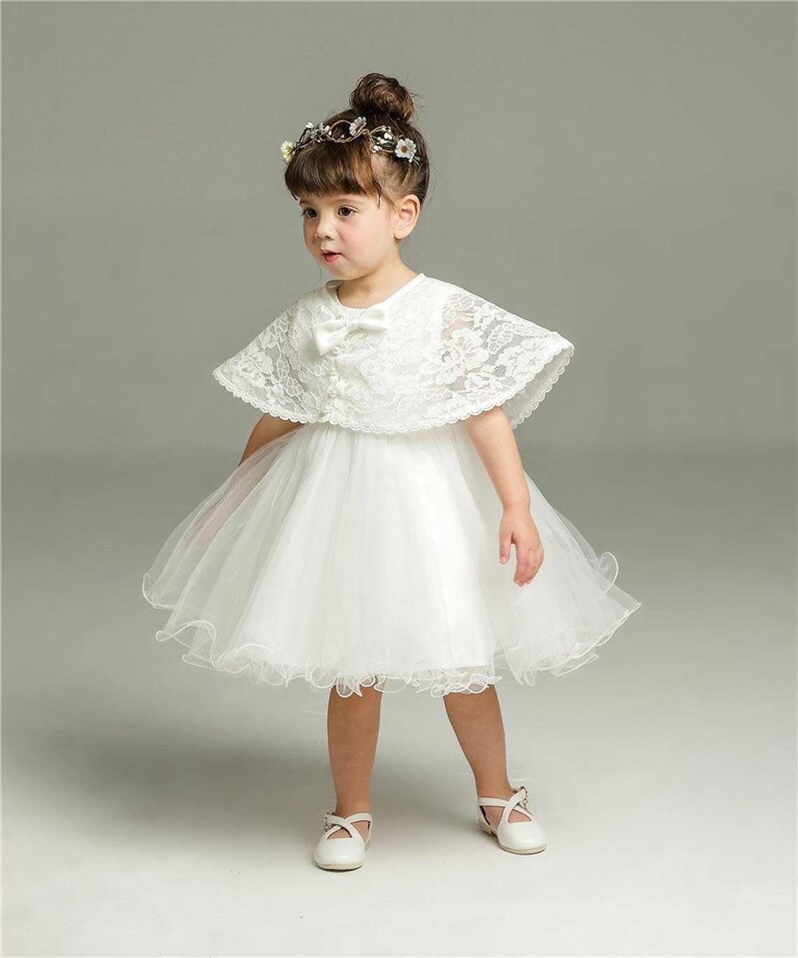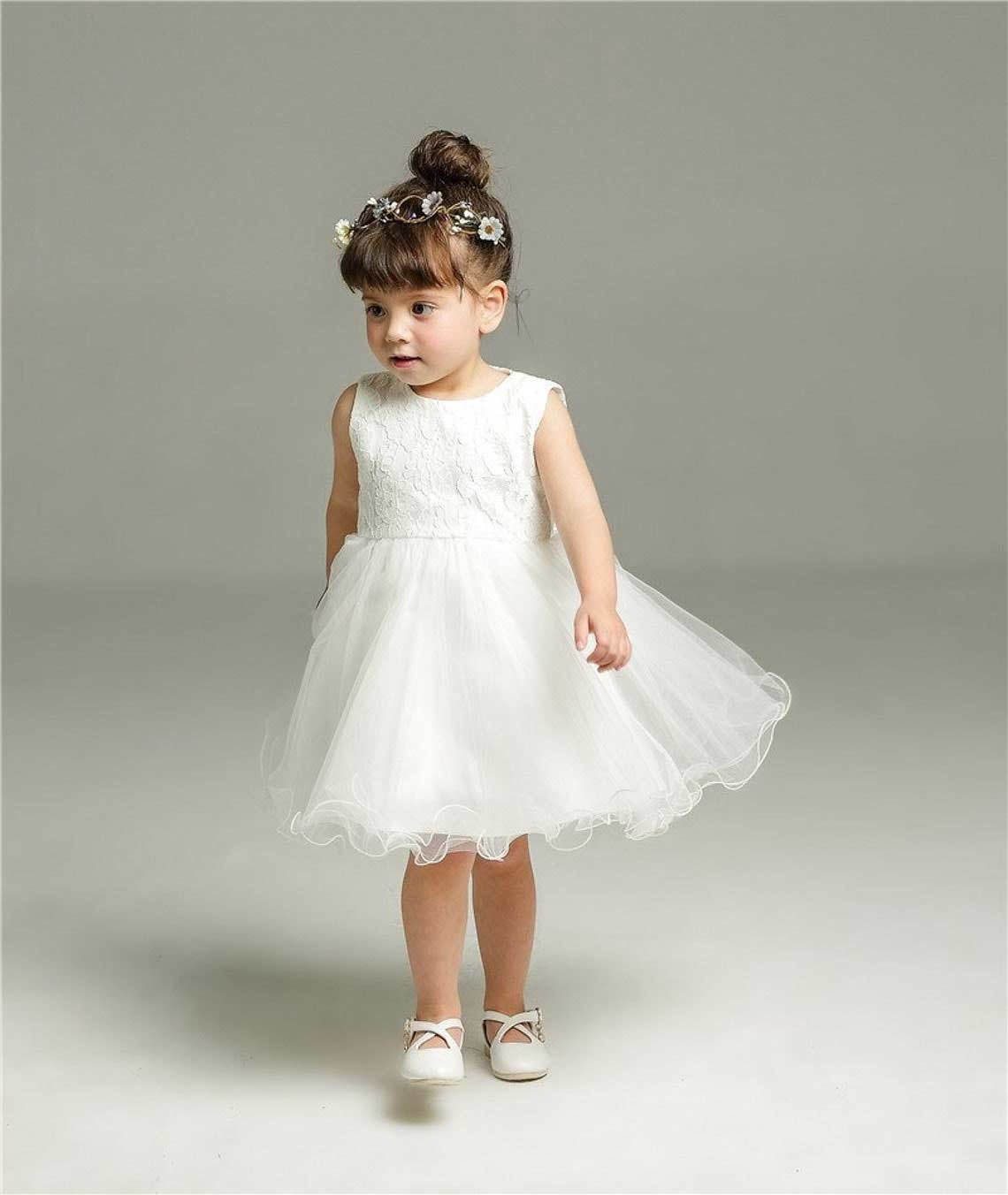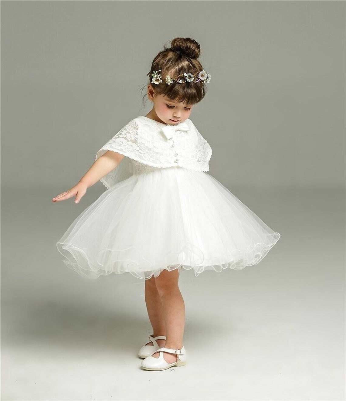 Baby Girls White White Tulle Christening Dress Wedding Party Dress Flower Girls Dress Baptism Dress Kids Birthday Party Outfit 182