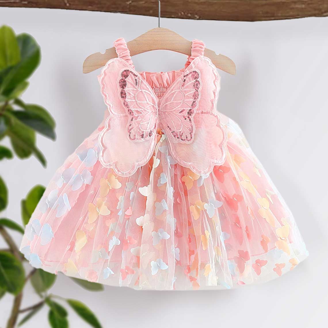 6M,36M Toddler Pink Butterfly Dress, Toddler Girls Dress,Summer Baby Clothes, Toddle Summer Outfit, Baby Girl Birthday Dress, Wing Party Dress 238
