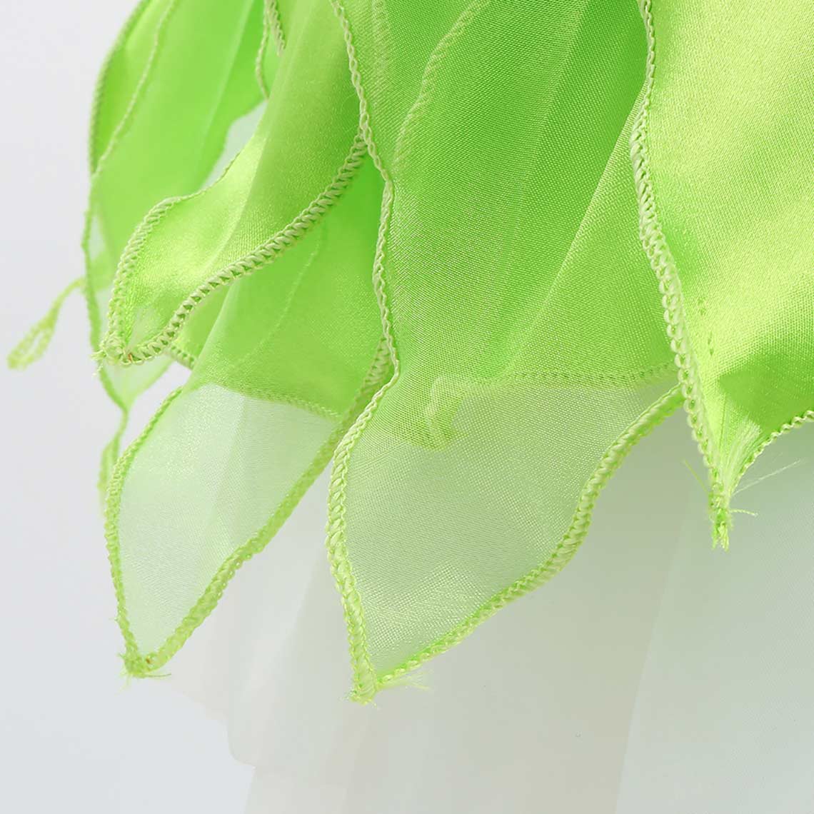 "This Classic Tinker Bell inspired costume makes it easy to dress your little one up as Peter Pan's sassy sidekick. The green faux satin dress features airy mesh petal sleeves that match the layered faux satin and organza skirt. Finish the look with the included wings, headband and wand to give them their fairy magic!