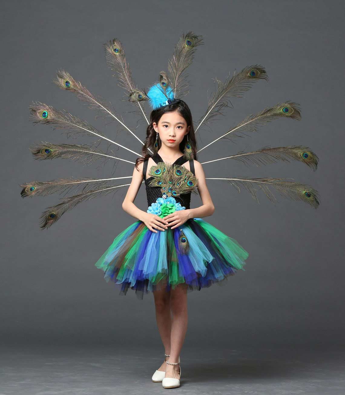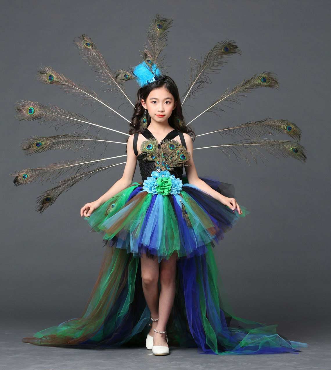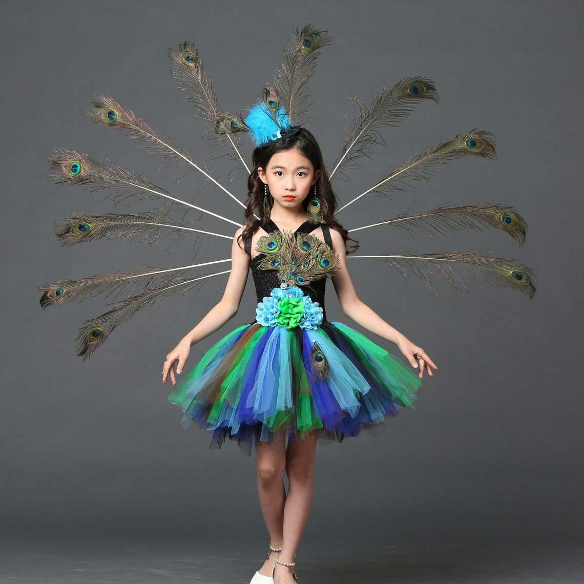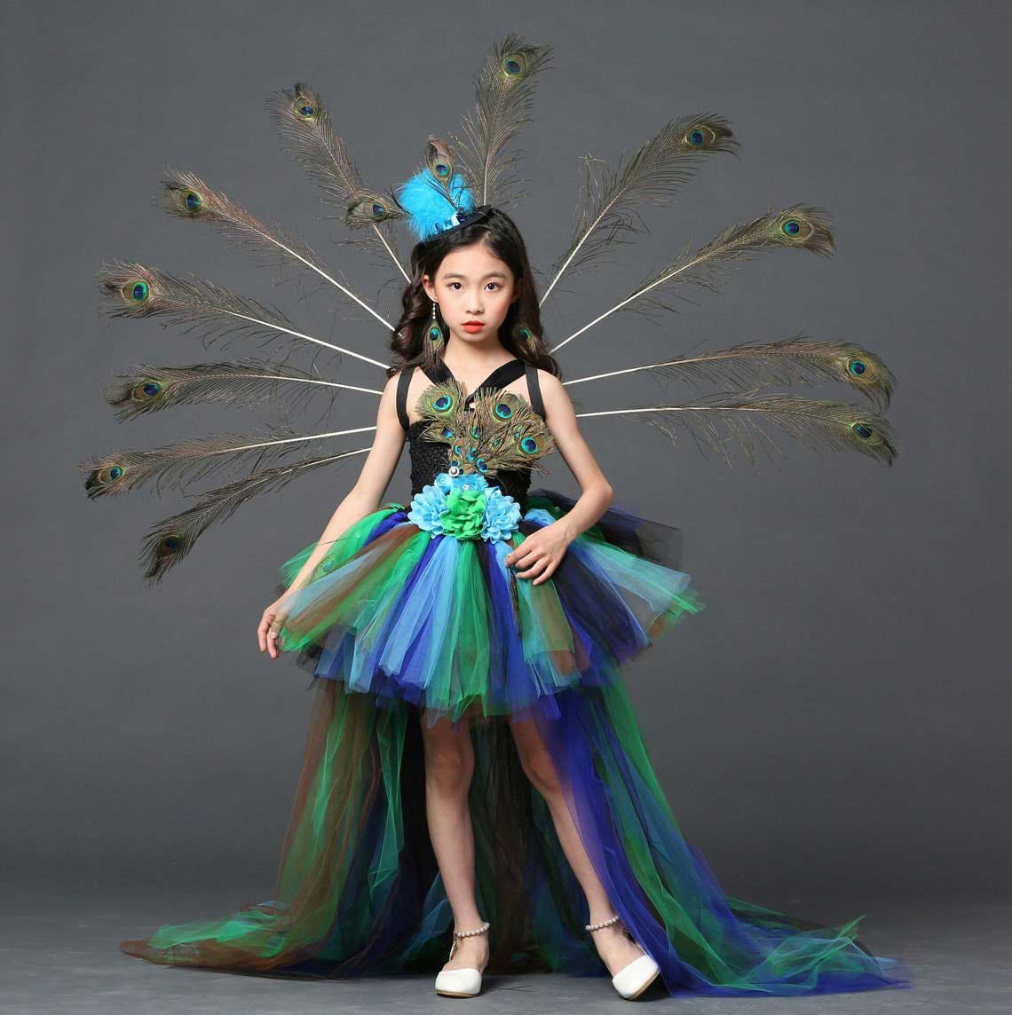 Peacock Party Dress, Girl Ball Gown, Flower Party Tulle Dress, Halloween Dress 298