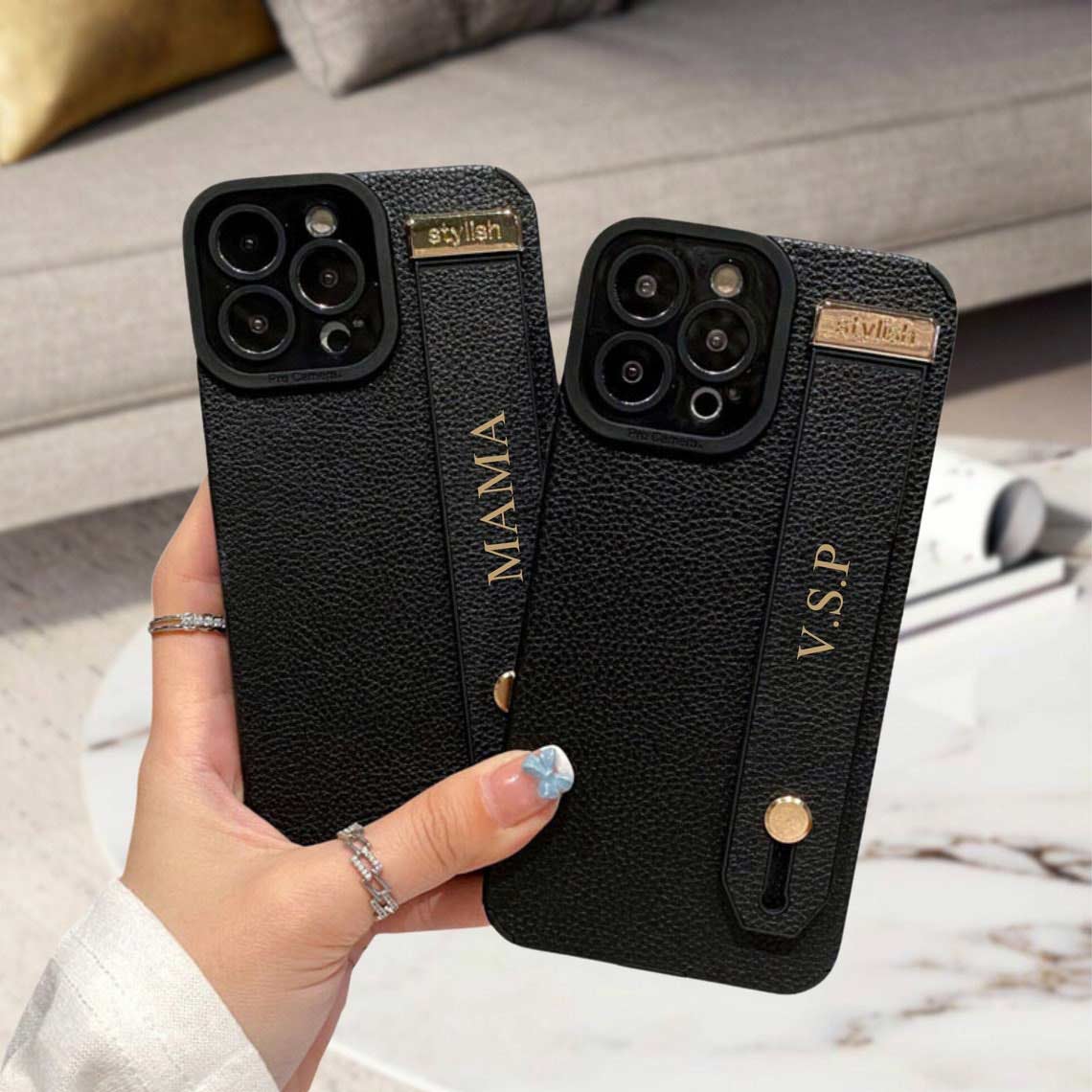 Keep your iPhone safe and stylish with our luxury leather case with strap. It comes with a handy strap for easy carrying and features personalization embossed in gold or silver letters. You can personalize it with your name or a favourite phrase to make it truly yours. It's a great choice for yourself or as a thoughtful gift.