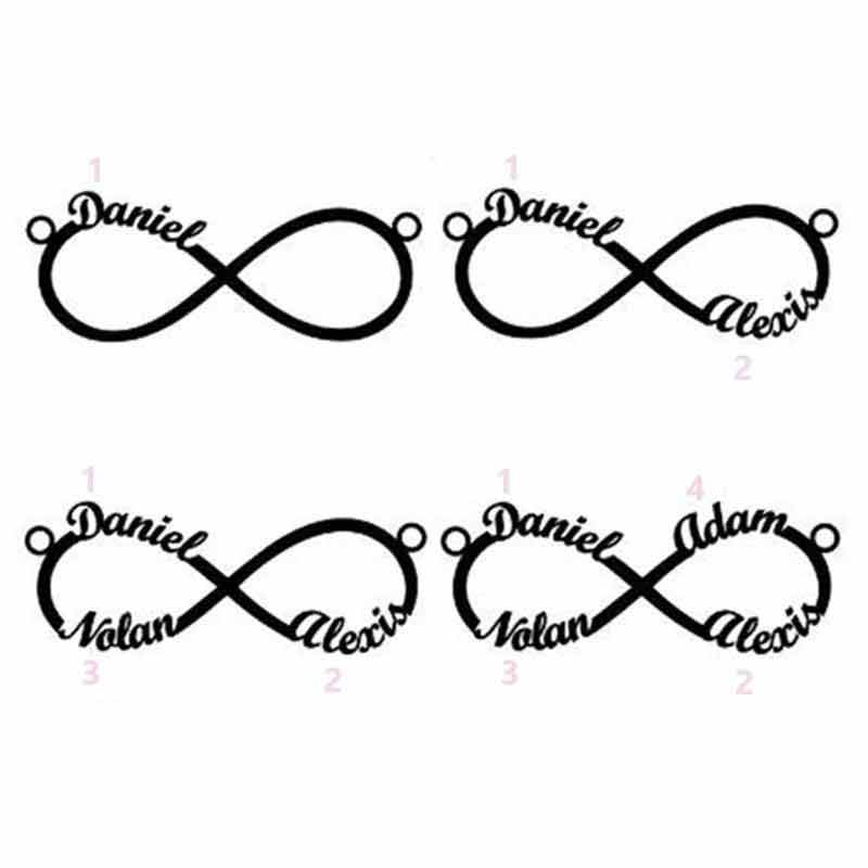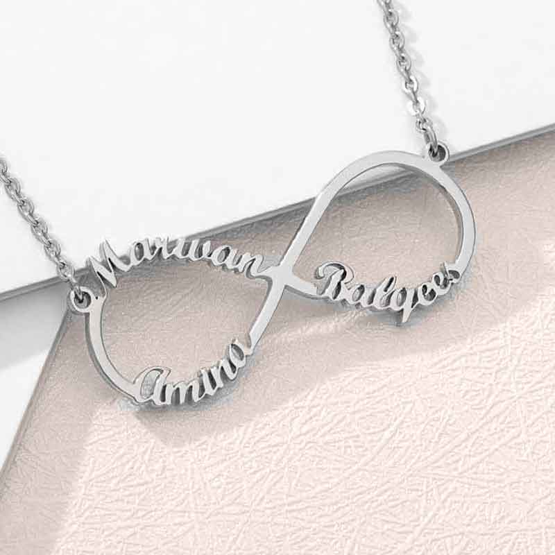 Crafted with care, this infinity necklace includes your choice of names, making it a unique and meaningful accessory.