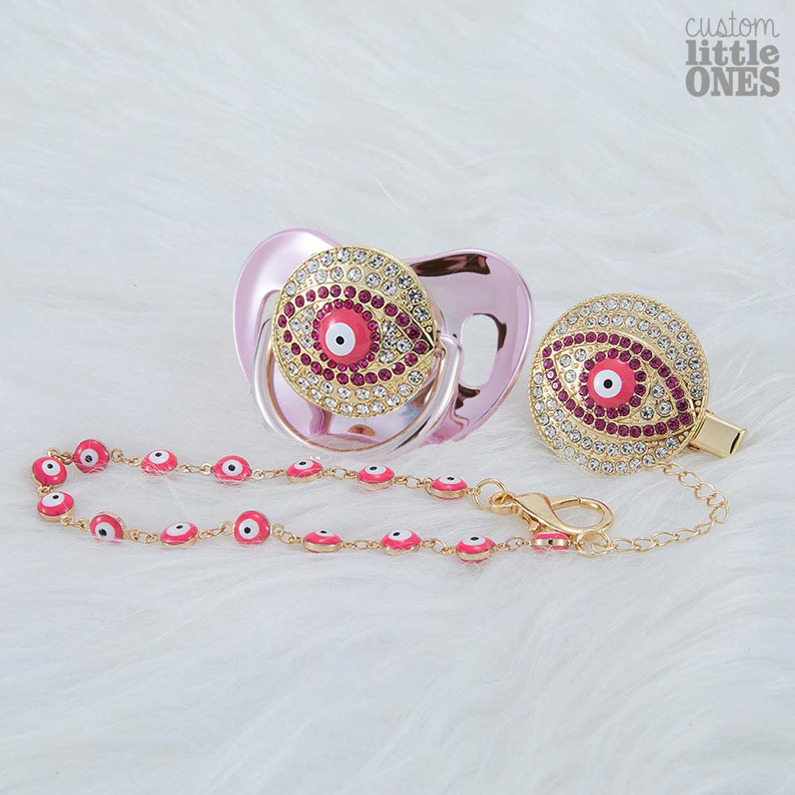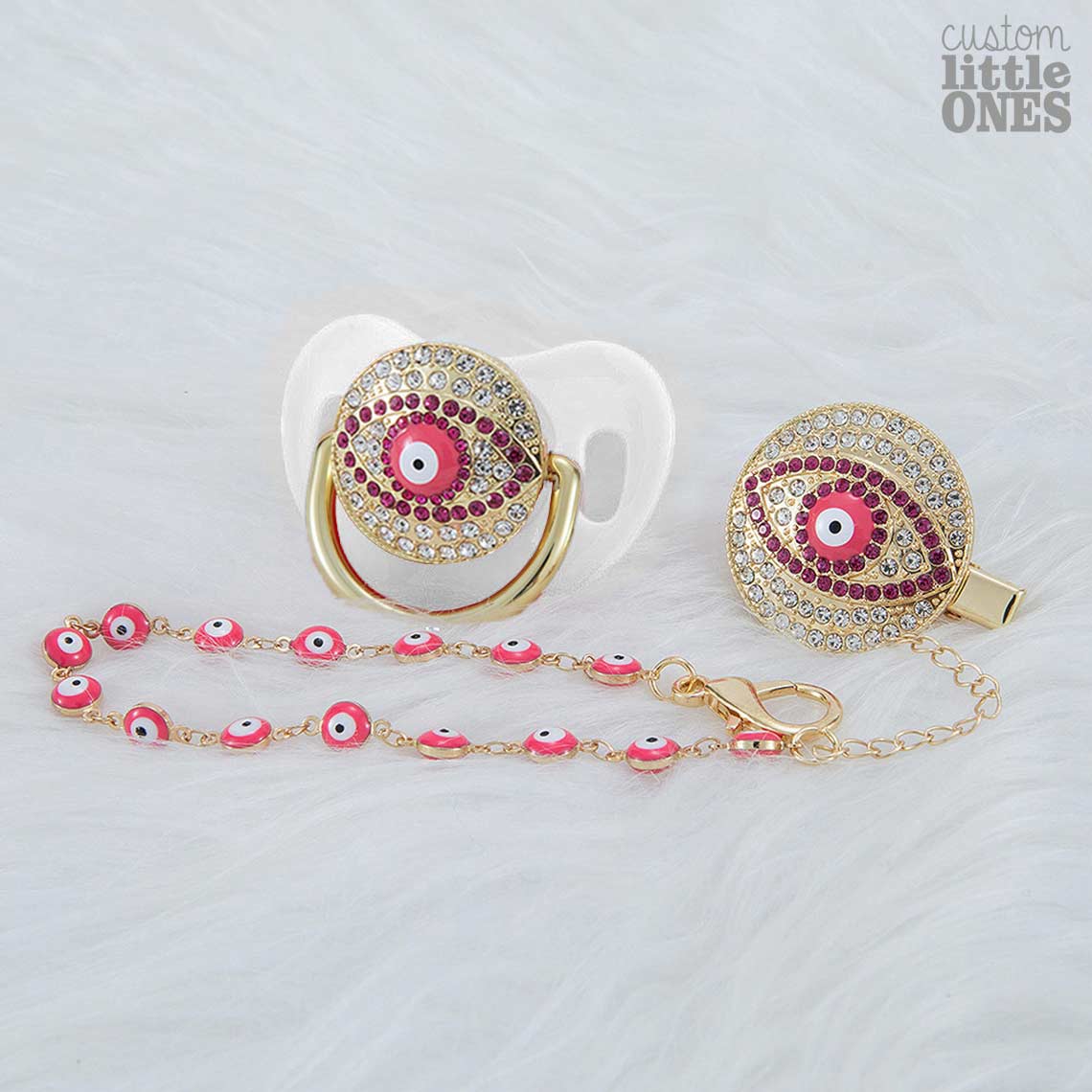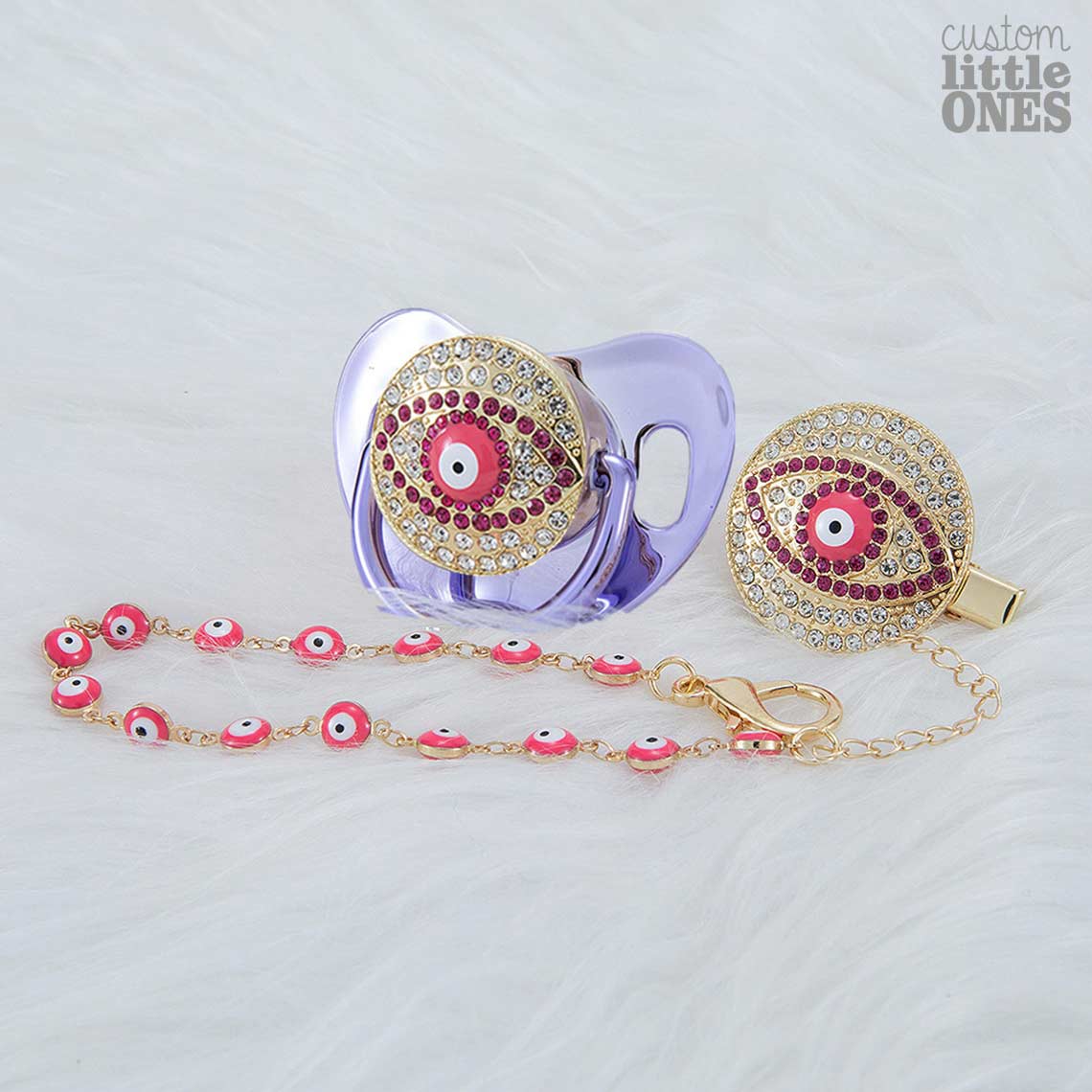 Girls Evil Eye Pacifier Dummy And Clip 9