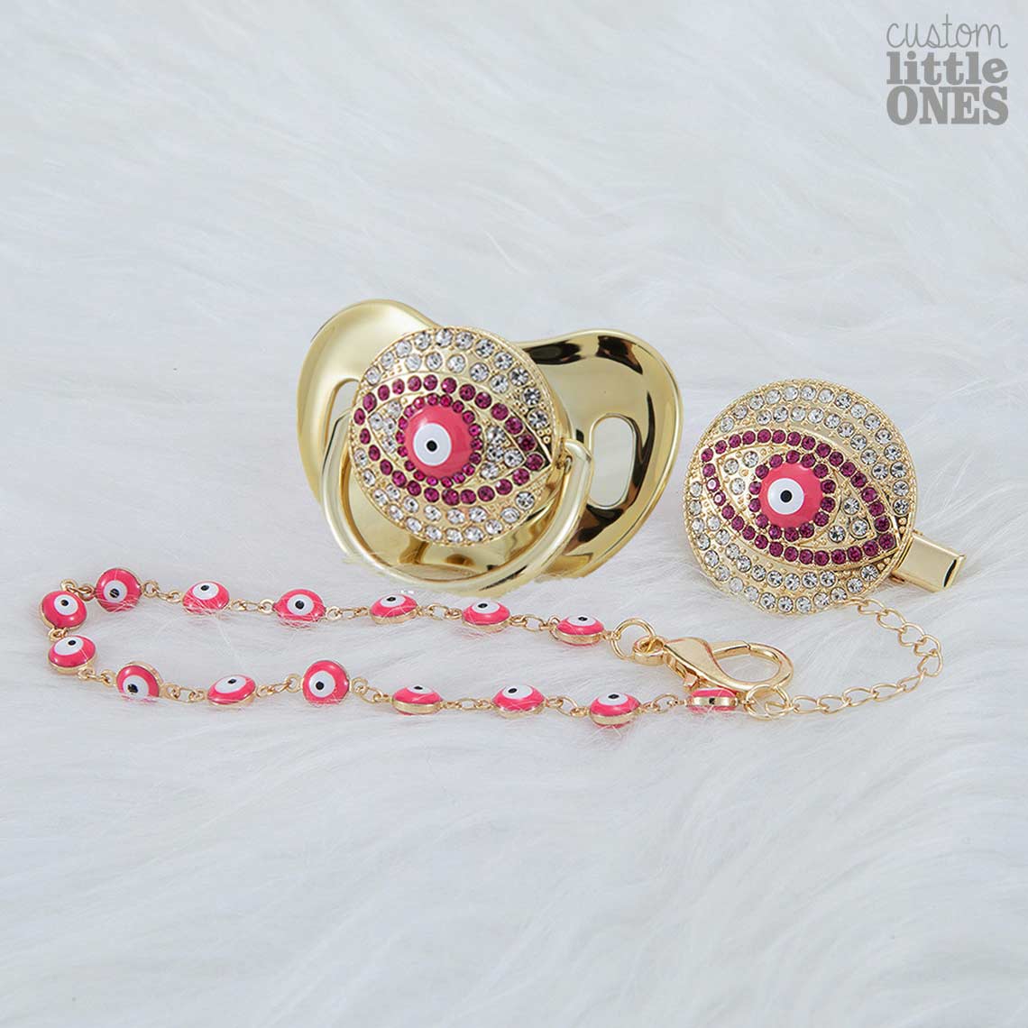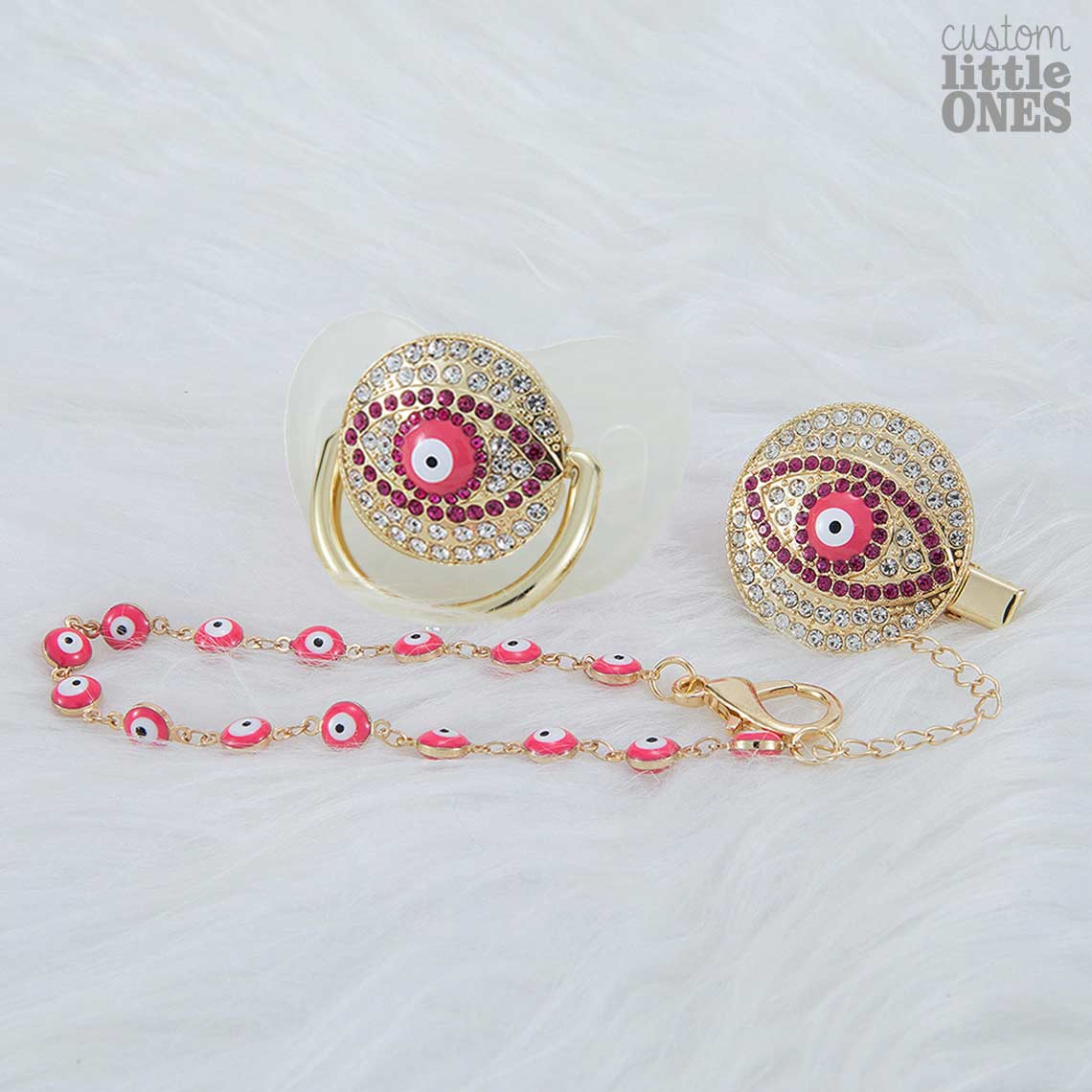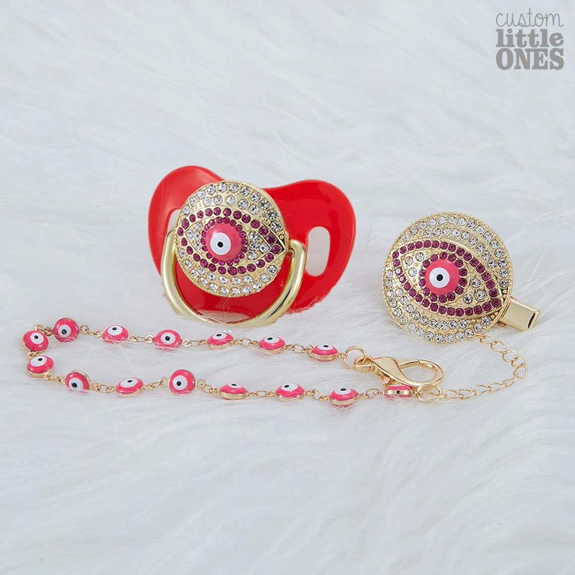 Girls Evil Eye Pacifier Dummy And Clip 9