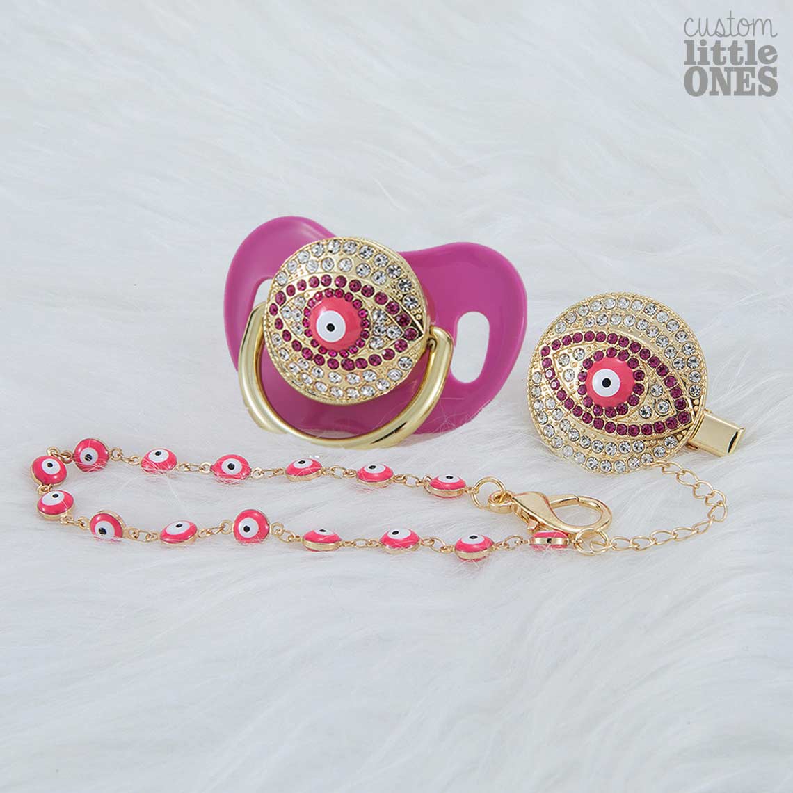 GIRLS EVIL EYE PACIFIER AND CLIP / DUMMY AND CLIP