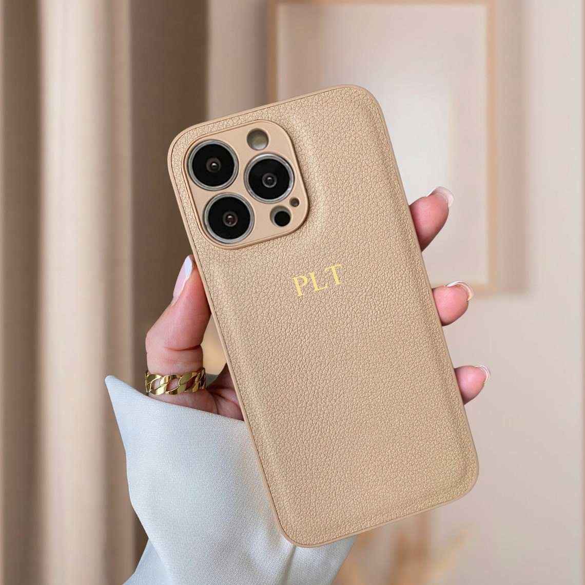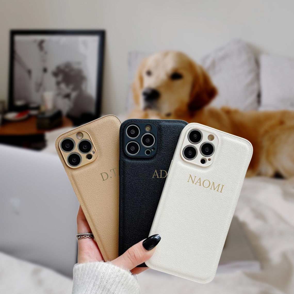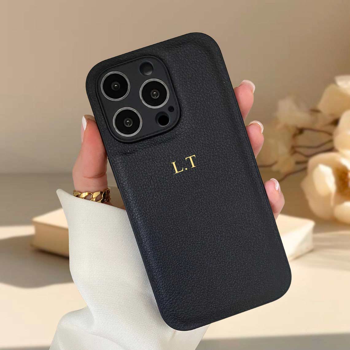 Personalized PU leather iPhone cases, includes camera lens protection.