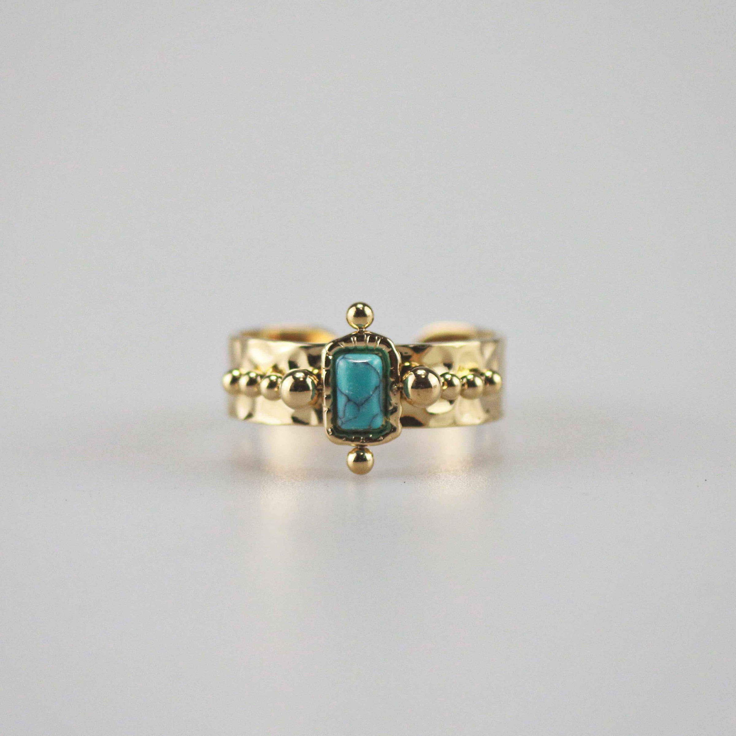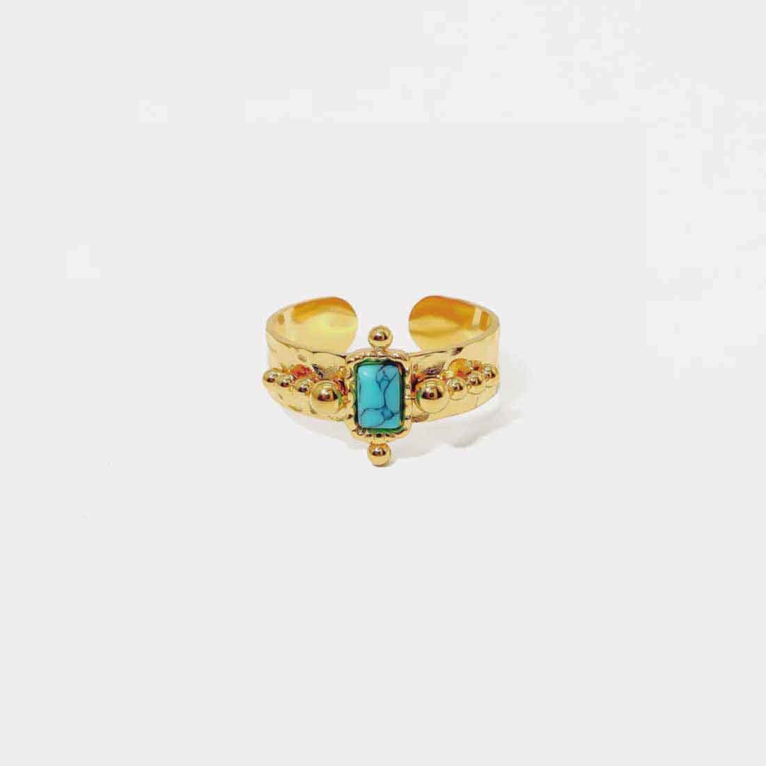 Another regal addition to our Queen collection. Crafted with a bohemian flair, this ring features an eye-catching square turquoise gemstone, that adds a touch of both style and sophistication.